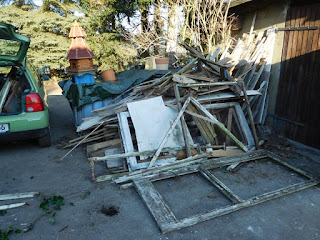 Trotz dass ich laufend zum Recyclinghof fahre, wird der Holzhaufen nicht kleiner, mei